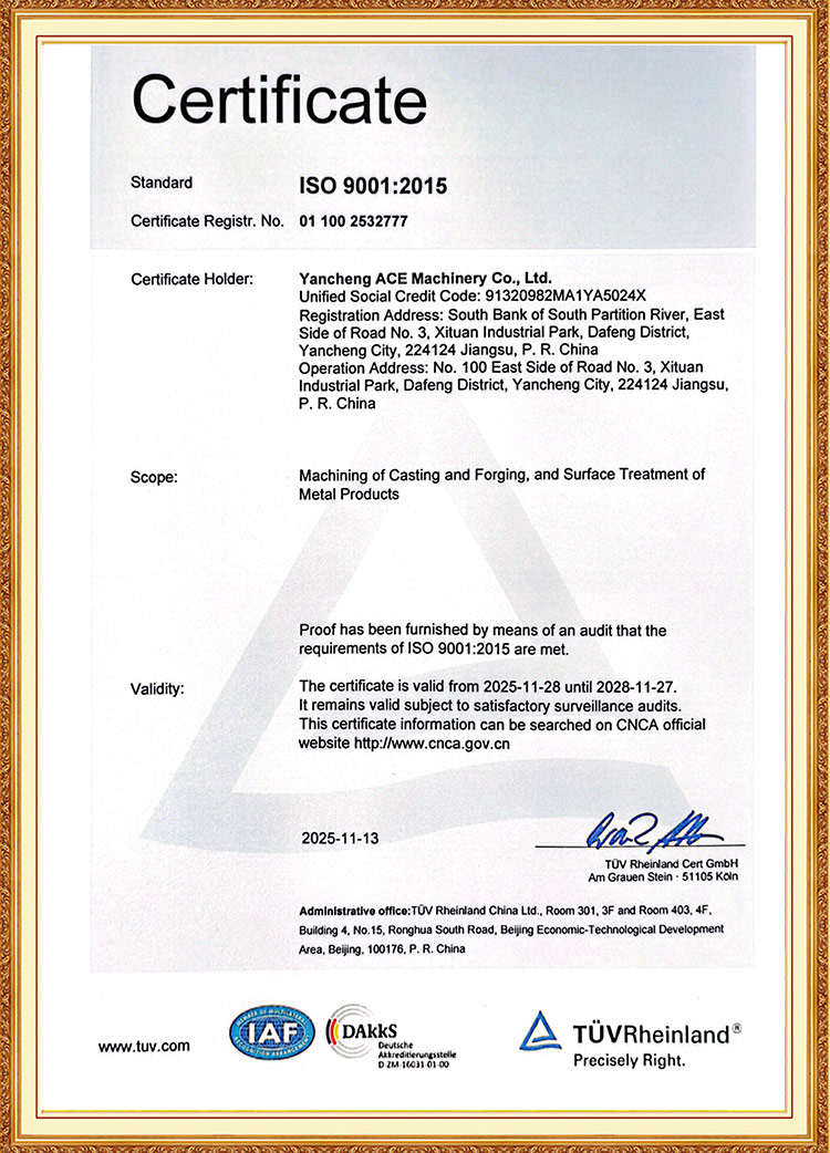 ACE Group is a comprehensive enterprise group focused on the heavy industrial manufacturing sector, serving as a China তাক Forgings Manufacturers and তাক Forgings Factory. Its business spans forging, heat treatment, precision machining, welded structures, and heavy-duty power & free chain spraying production. This integrated layout covers the core production processes of the industrial machinery industry, combining technological strength with large-scale production capabilities.